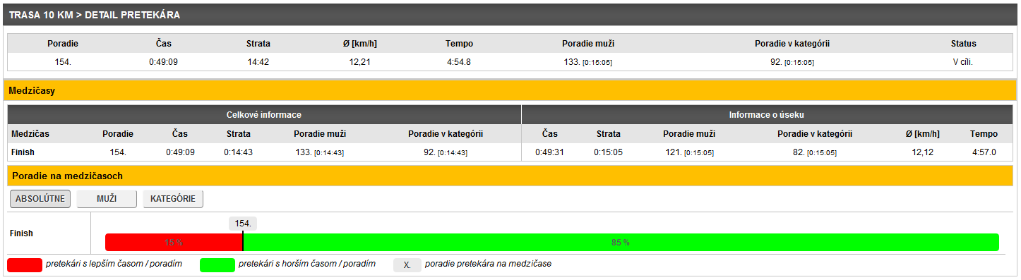Výsledný čas 49:09 a prekonanie 50 minútovej hranice. 154. miesto z 1258 prihlásených.